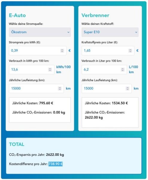 Wer rechnen kann und Geld sparen will, sollte mal ernsthaft über ein Auto mit Elektroantrieb nachdenken. Wer zusätzlich noch Photovoltaik auf dem Dach hat, fährt im besten Fall umsonst. Und wer Spaß beim Fahren haben will, sowieso. Das macht dann zwar nicht mehr so lustig brumm-brumm wie vorher, aber dafür zieht Ihr an der Ampel jeden Verbrenner ab – versprochen! Und selbst wenn Euch die Umwelt am Allerwertesten vorbeigeht: Ihr leistet einen Beitrag zur Decarbonisierung der Welt.